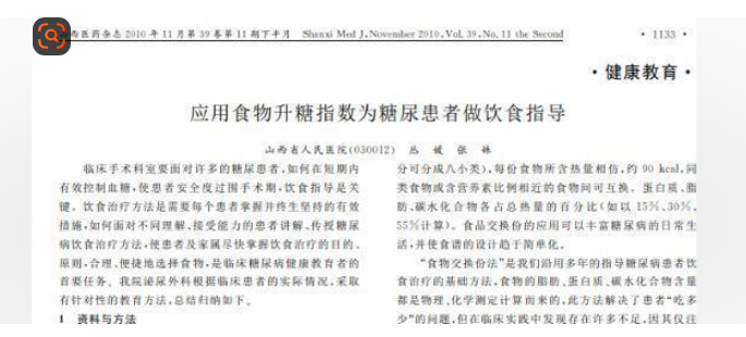 [1]丛媛.应用食物升糖指数为糖尿患者做饮食指导, 山西医药杂志(下半月刊) ,2010-11-25