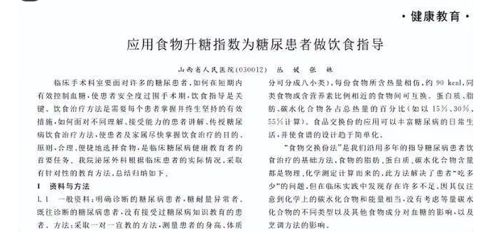 [1]丛媛.应用食物升糖指数为糖尿患者做饮食指导, 山西医药杂志(下半月刊) ,2010-11-25