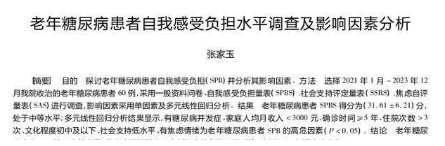 [1]张家玉.老年糖尿病患者自我感受负担水平调查及影响因素分析[J].临床护理杂志,2025,24(04)