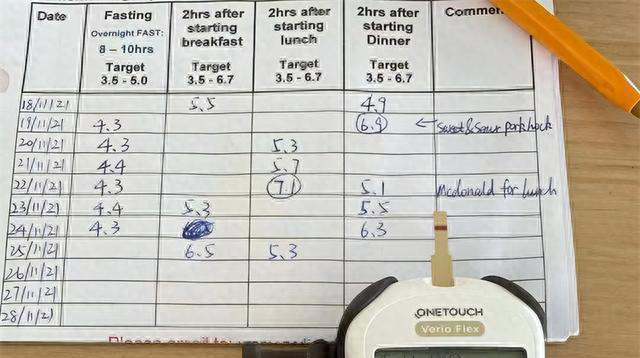 每次测试血糖后,患者最好将结果记录下来,医生可根据测量结果情况调整用药或者胰岛素的剂量,患者也可自行调整饮食,如调整饮食中碳水化合物的摄入量、减少高糖饮食的摄入等,以期将血糖维持在目标范围内。