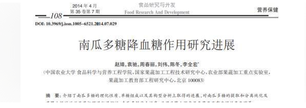 [1]赵婧,袁驰,周春丽,等.南瓜多糖降血糖作用研究进展[J].食品研究与开发,2014