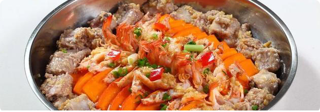 5)搭配副食一起吃:南瓜要当做主食,搭配肉、蛋、蔬菜等副食一起吃,同时注意吃饭顺序,先吃副食后吃主食,才能有利于血糖控制。也可以将南瓜和副食做到一起,比如搭配排骨、豆豉做成南瓜豆豉蒸排骨等。