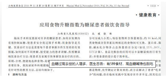 [1]丛媛.应用食物升糖指数为糖尿患者做饮食指导, 山西医药杂志(下半月刊) ,2010-11-25