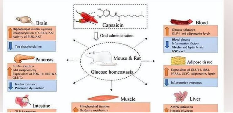辣椒素对血糖的调节作用与其对胰岛素敏感性的影响密切相关。辣椒素可以通过多个途径改善胰岛素敏感性,进而帮助控制血糖。