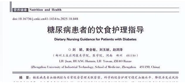 糖尿病患者的饮食护理指导,刘娟,现代食品,2025-09-28