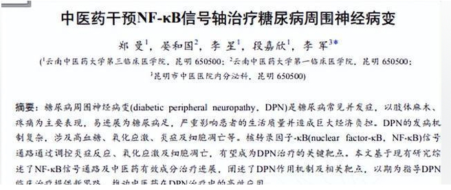 中医药干预NF-KB信号轴治疗糖尿病周围神经病变网络首发郑曼:晏和国:李星;段嘉欣:李军生命的化学2025-08-22