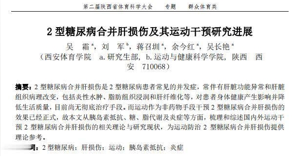 [1]吴 霜, 2型糖尿病合并肝损伤及其运动干预研究进展,西安体育学院 ,2024-06